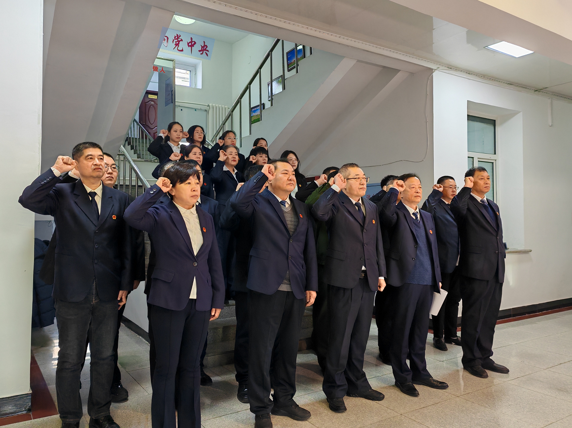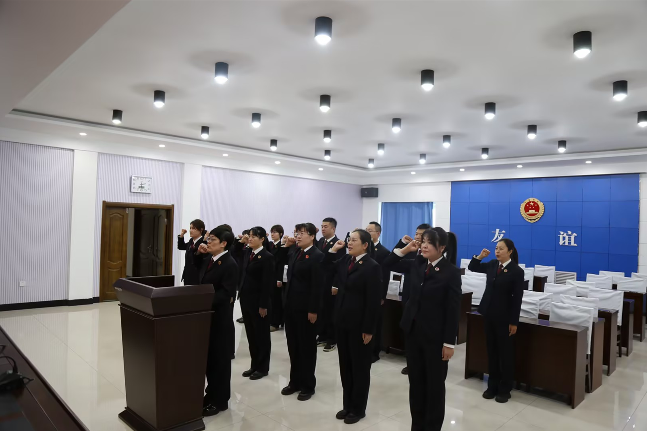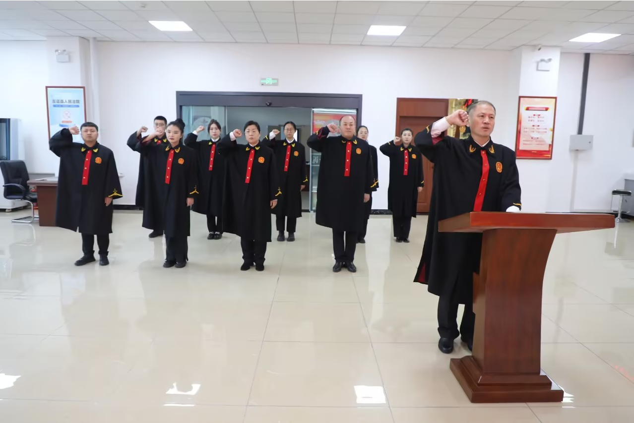 在县人民法院宣誓现场,铿锵有力的誓言,既是对宪法的崇高致敬,也是对人民的郑重承诺,彰显了人民法院法官践行司法为民的坚定决心。