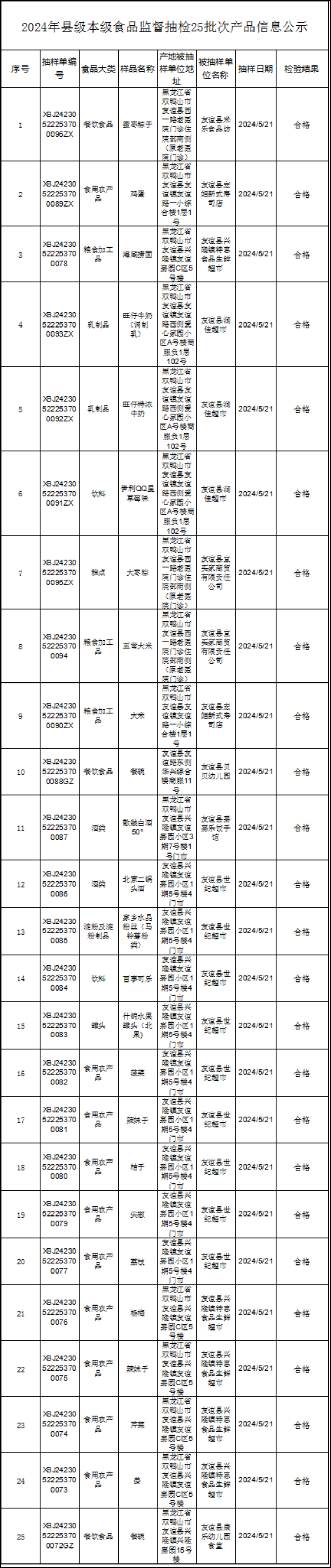 2024年县级本级食品监督抽检25批次产品信息公示">