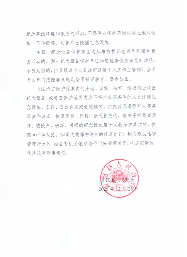 友谊县人民政府关于划定友谊县烈士纪念设施保护范围的公告