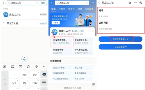 以支付宝“黑龙江人社”小程序为例:打开支付宝,搜索“黑龙江人社”,进入“黑龙江人社”小程序。点击社保待遇资格认证,输入被认证人员的姓名和身份证号后点击“领取待遇资格认证”,进行人脸识别即可完成认证。