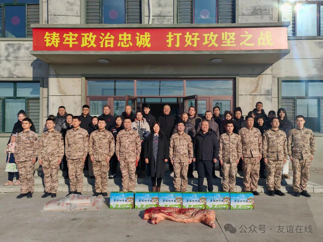 在驻县某部队营地,爱心企业家们与部队官兵们亲切交流,详细了解部队建设、官兵训练生活等情况,对他们长期以来在维护地方稳定等方面作出的突出贡献表示衷心感谢,并送上慰问物资。