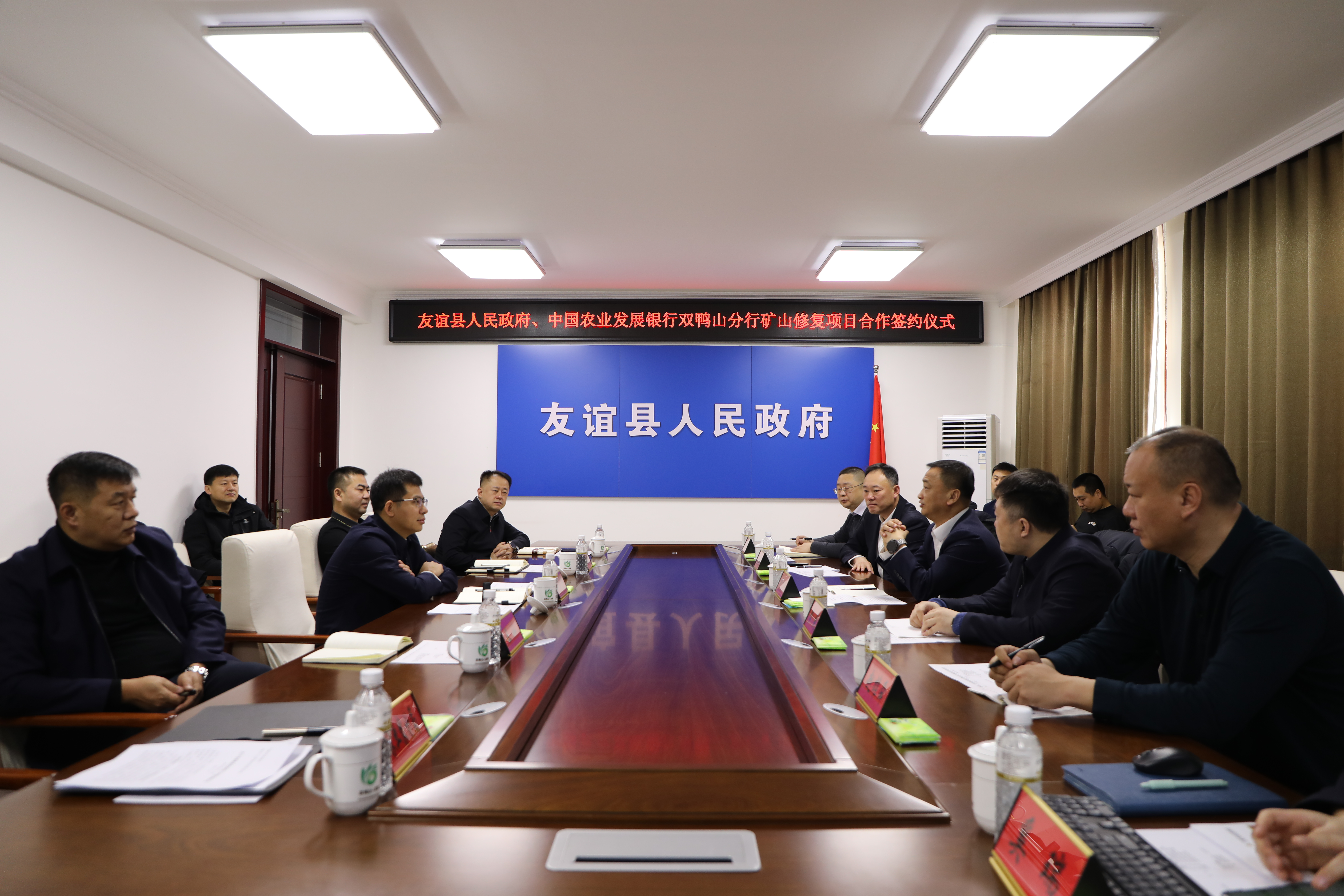 1月23日,在政府会议室,县政府与中国农业发展银行双鸭山分行就矿山修复项目合作举行了签约仪式。县委副书记、县长张成亮、市农发行党委书记、行长李君仕,副县长孔庆龙、王屾及相关部门负责同志参加。
