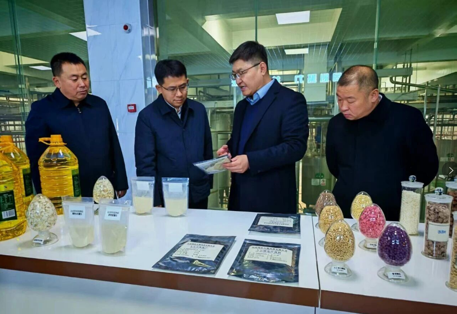 在高唐县考察期间,考察团走进山东国宏生物科技有限公司,与企业负责人围绕生物科技研发、大豆深加工、绿色生产技术等议题深入交流,重点了解大豆分离蛋白、功能性食品等产品的生产工艺和市场前景。张成亮表示,我县是大豆主产区,拥有丰富的原料资源和产业发展潜力,生物科技产业与我县农业特色产业高度契合,希望双方加强技术合作与项目对接,推动大豆产业链延伸升级,助力我县农业产业化高质量发展。