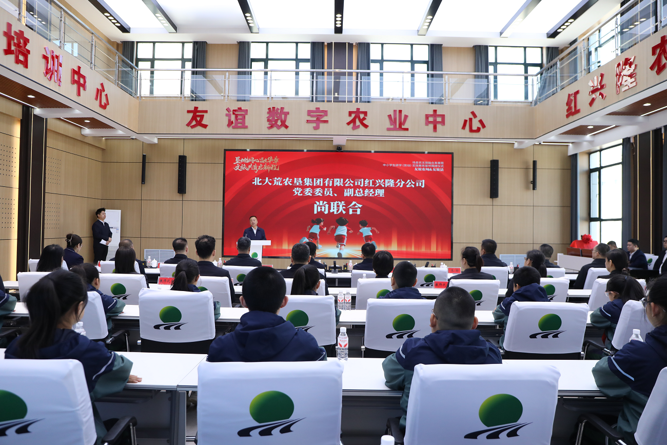 揭牌仪式上,红兴隆分公司副总经理尚联合,县委常委、副县长王屾,友谊分公司副总经理韩乃坤分别致辞。县委常委戴兵、友谊分公司副总经理韩乃坤为中小学生研学(劳动)实践教育基地揭牌,县场双方领导共同出席签约仪式。