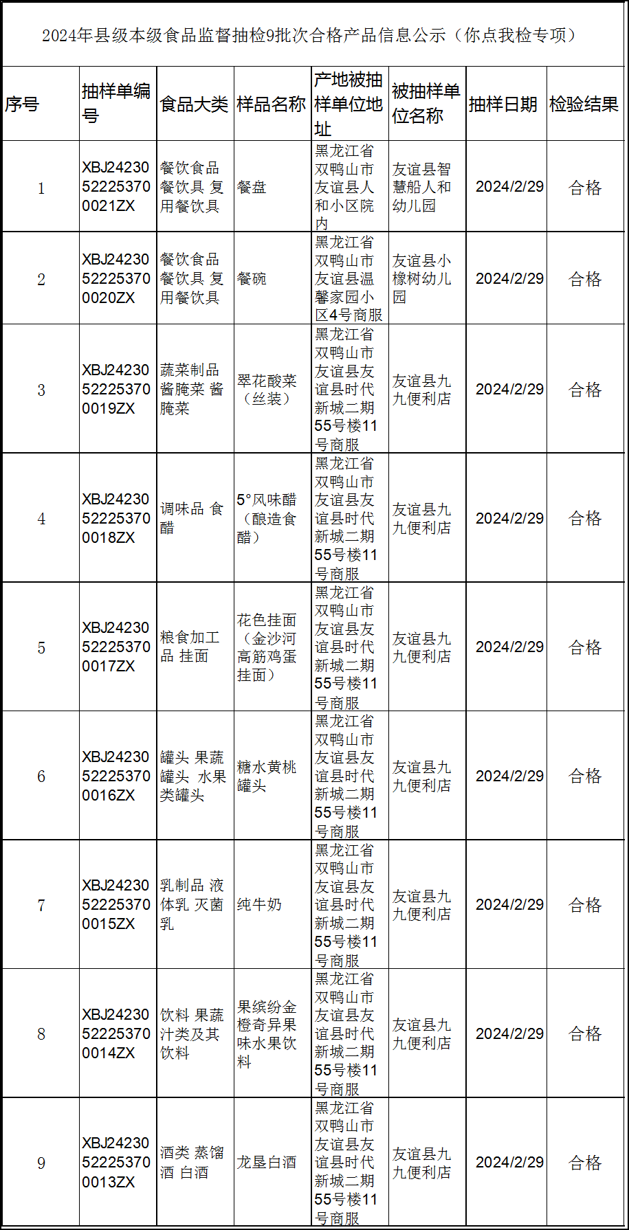 2024年县级本级食品监督抽检9批次合格产品信息公示(你点我检专项)">
