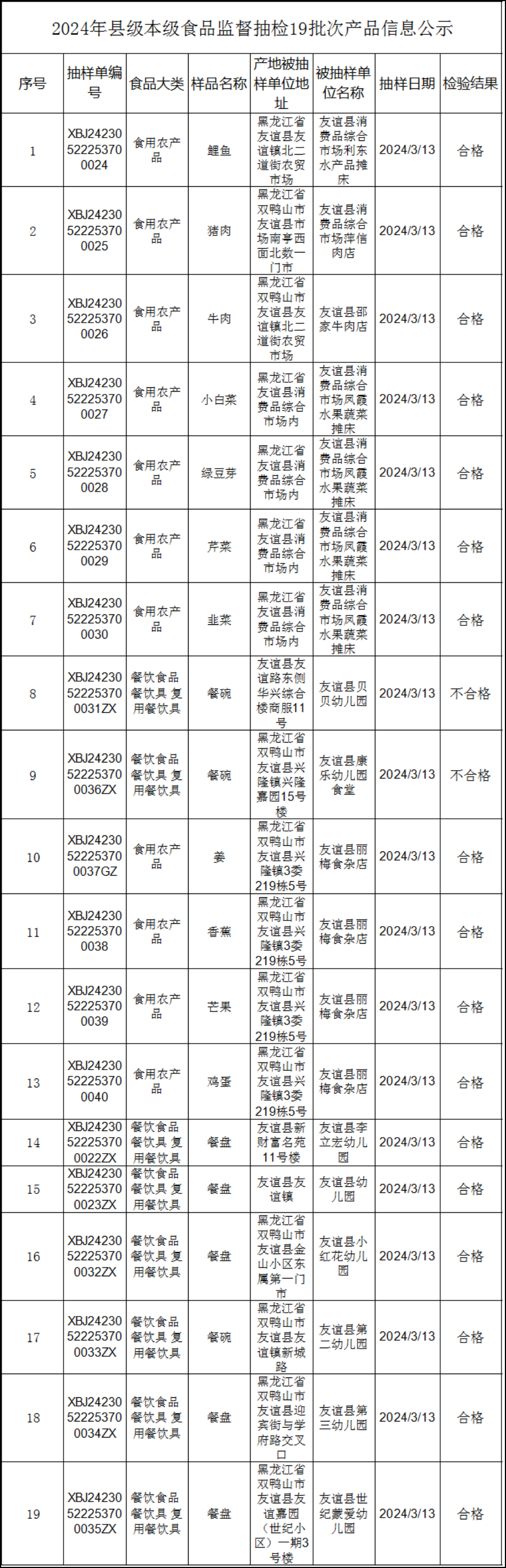 2024年县级本级食品监督抽检19批次产品信息公示">