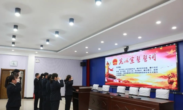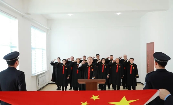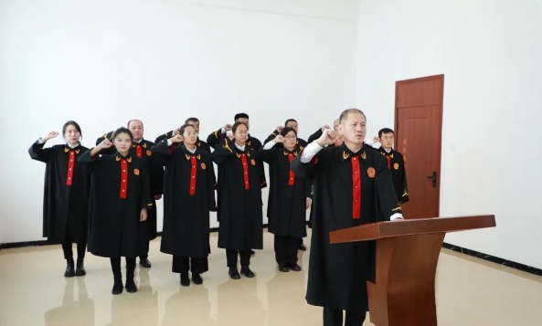 宪法宣誓仪式上,党组书记、院长李德福担任领誓人,全体员额法官参加宪法宣誓。党组成员、副院长陈振华主持宣誓仪式。