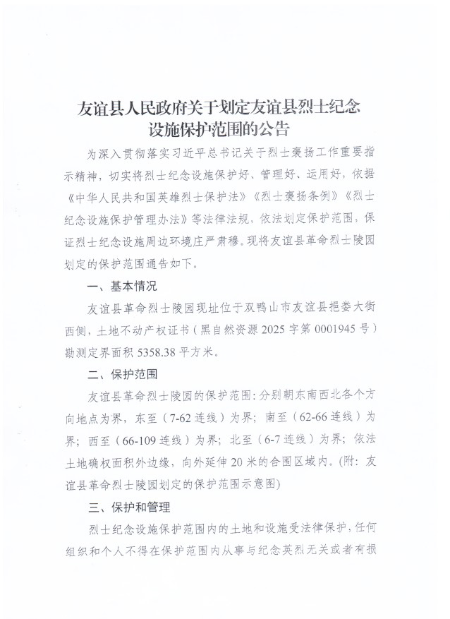 友谊县人民政府关于划定友谊县烈士纪念设施保护范围的公告