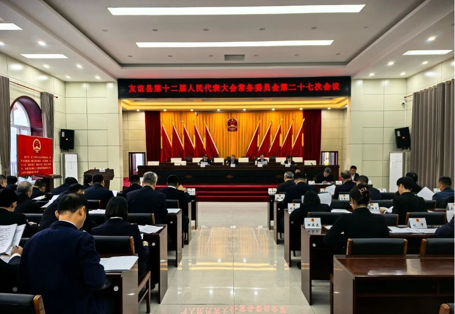 11月25日,县人大常委会主任梁爱民主持召开友谊县第十二届人民代表大会常务委员会第二十七次会议。县人大常委会组成人员出席会议,相关县领导、部分乡镇人大主席、县人大代表及相关部门负责同志列席会议。