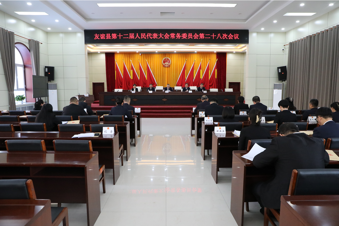12月30日,县人大常委会主任梁爱民主持召开友谊县第十二届人民代表大会常务委员会第二十八次会议。县人大常委会组成人员出席会议。县政府相关负责同志、部分乡镇人大主席、县人大代表及相关部门负责同志列席会议。