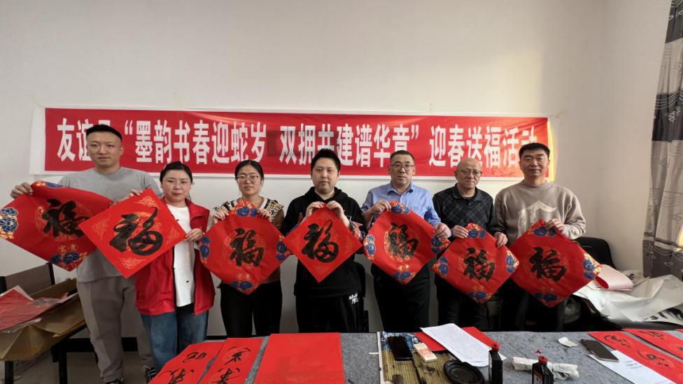 近日,友谊县退役军人事务局联合县文联,组织书法爱好者在新时代文化交流中心,开展了一场别开生面的“写春联,迎新春”活动,为驻县部队和优抚对象送上新春的美好祝福。
